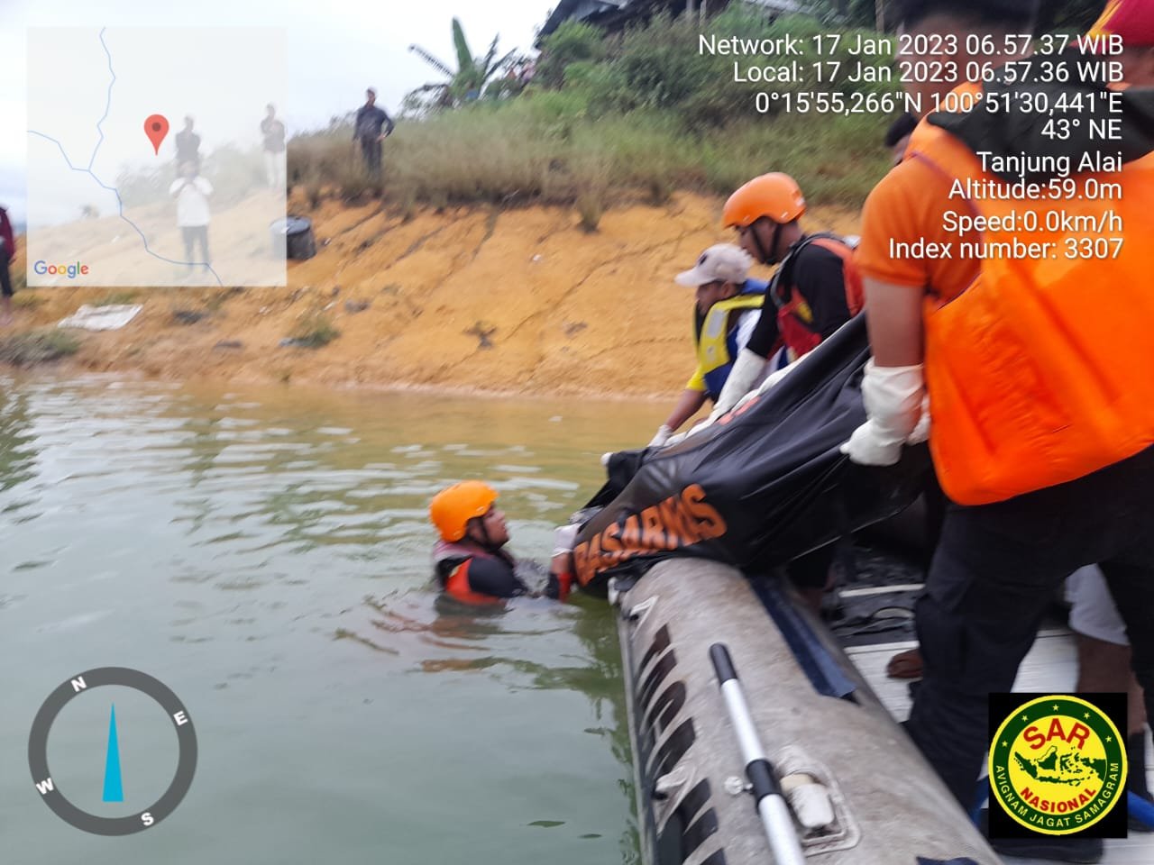 XIII KOTO KAMPAR, Transparansi Indonesia.co.id Akhir pencarian korban tenggelam sudah berakhir, korban ditemukan mengapung tidak jauh dari korban tenggelam oleh Tim Basarnas, Polres Kampar, Polsek XIII Koto dan masyarakat sekitar, Selasa (17/1/2023) sekitar pukul 16.25 WIB.