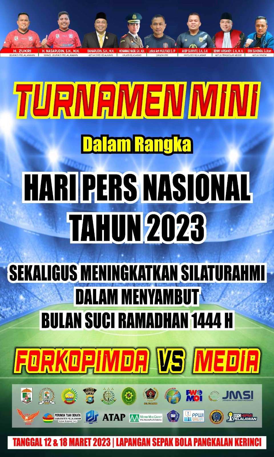 Pertandingan turnamen mini itu akan diikuti 4 tim yakni Tim Forkopimda A, Tim Forkopimda B. Sedangkan dari organisasi Pers terdiri dari Tim Media A dan Tim Media B yang akan diselenggarakan pada tanggal 12 dan 18 Maret 2023 di Lapangan Sepak Bola Pangkalan Kerinci Kota.