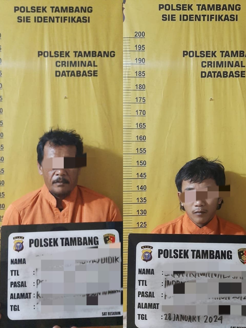 KAMPA, Transparansi indonesia.co.id Badab! Seorang ayah tiri berinisial DD (51) dan JK (24) abang tiri ini nekat mencabuli dua orang anak tirinya, yang masib berusia belia, kini kedua pelaku sudah mendekam di sel tahanan Polsek Tambang, Minggu (28/1/2024) sekira pukul 20.23 WIB.
