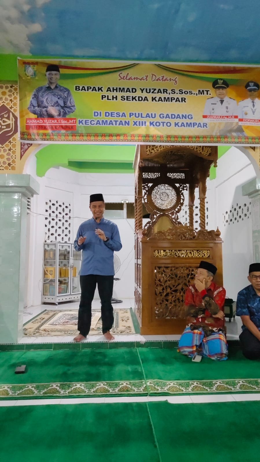 Selain memberikan santunan, Plh. Sekda Ahmad Yuzar juga memberikan bantuan berupa dana pembangunan dan ambal untuk Masjid Al-Muslimin desa Pulau Gadang, sebesar 20 Juta Rupiah Kecamatan XIII Koto Kampar.