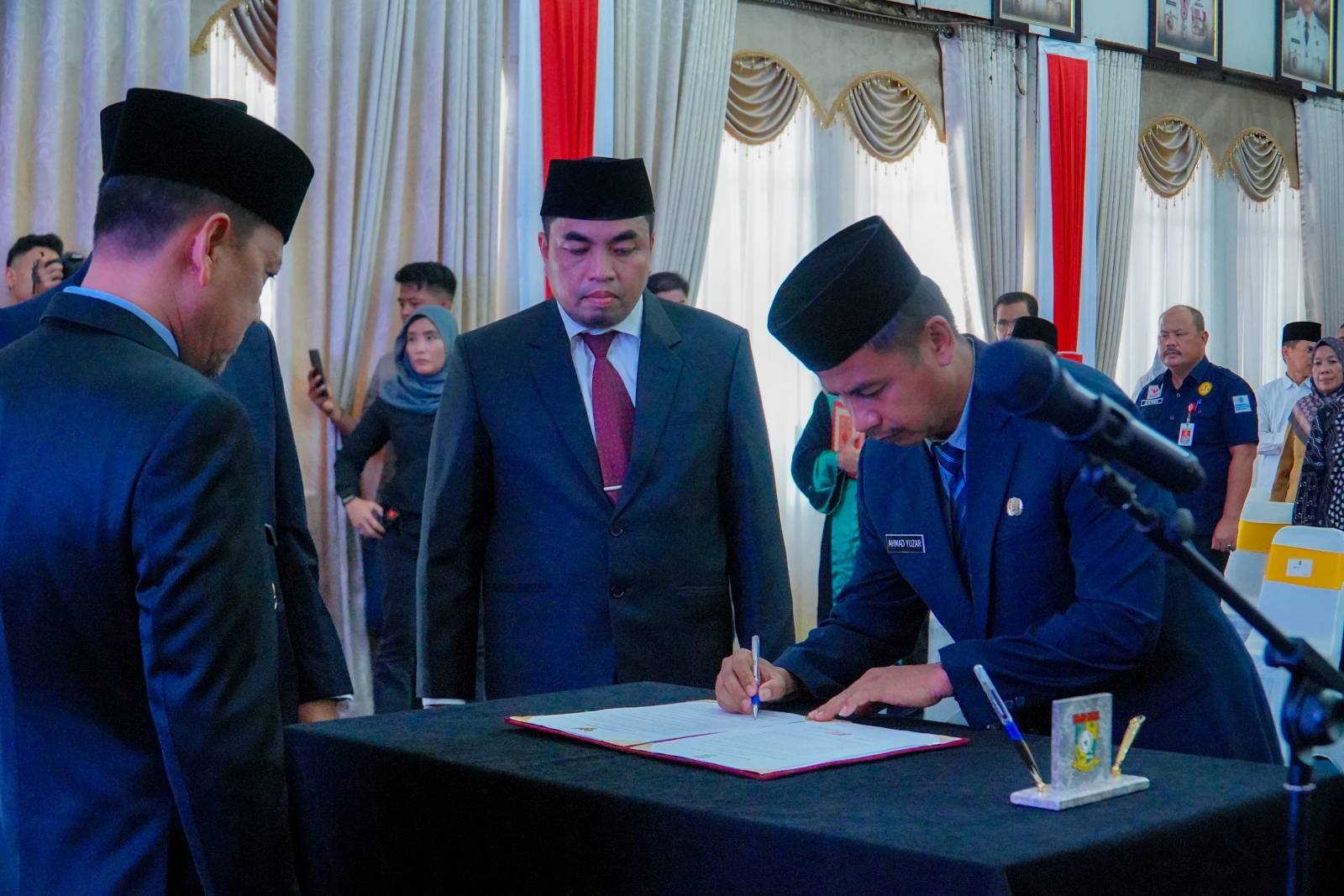 Bangkinang Kota, Transparansi lndonesia.co.id Berdasarkan Surat Keputusan Pj Bupati Kampar Nomor : 410/BKSDM/IV/2024 tentang Pengangkatan Penjabat (Pj) Sekretaris Daerah (Sekda) Kabupaten Kampar, Pj Bupati Kampar H Hambali SE MH melakukan pengambilan sumpah dan pelantikan Pj Sekda Kampar Ahmad Yuzar S.Sos, MT di Aula Rumah Dinas Bupati Kampar. Selasa, 30/4/24