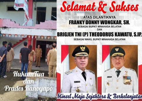 Tak ketinggalan, jajaran pemerintahan desa Ranoyapo, Kecamatan Ranoyapo yang mengucapkan selamat atas dilantiknya FDW-TK sebagai Bupati dan Wakil Bupati Minahasa Selatan periode 2025-2030.