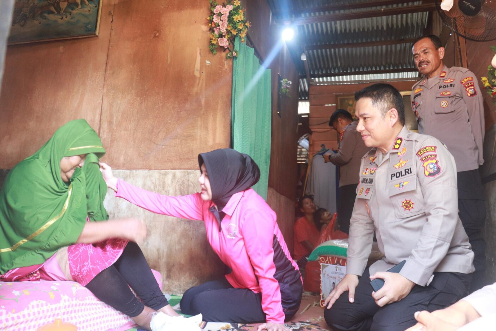 Kapolres Pelalawan Beserta Ketua Bhayangkari Cabang Pelalawan Manfaatkan Momen Hari Libur Sambangi Warga Kurang mampu.