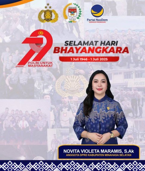 “Selamat HUT Bhayangkara ke-79, Polri Untuk Masyarakat yang semakin menekankan keberadaan polri ditengah-tengah masyarakat sebagai pelindung dan pengayom masyarakat,” ujar NVM.