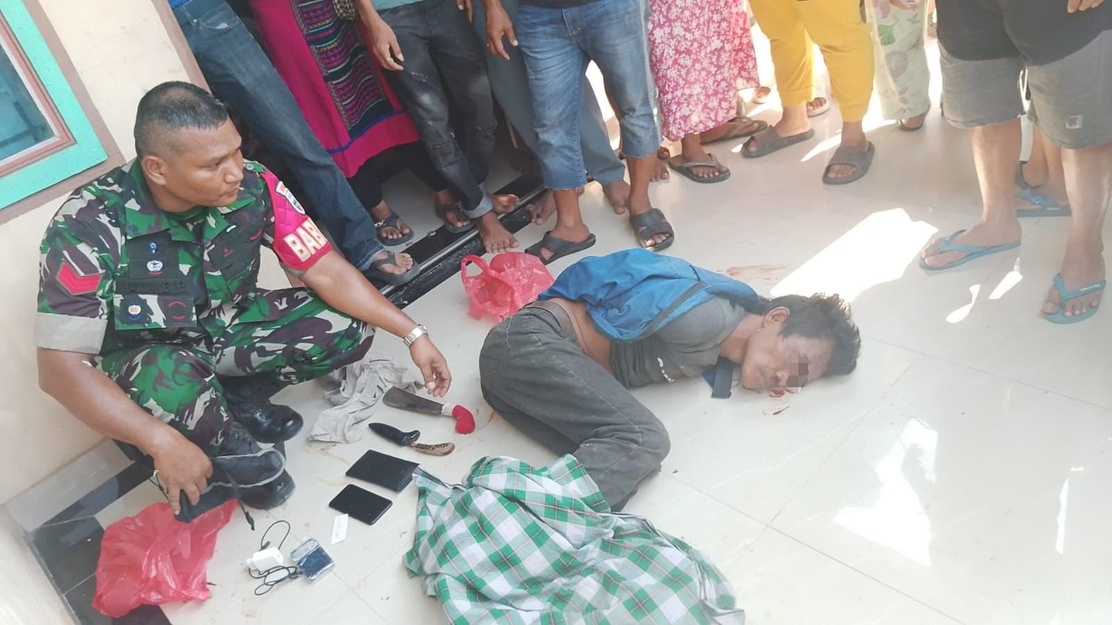 Warga sekitar yang mendengar keributan dan teriakan korban segera berdatangan untuk membantu. Pelaku diteriaki maling dan sempat menjadi sasaran amukan massa. Dalam situasi itu, Babinsa Kopka Ali Akbar yang berada tidak jauh dari lokasi langsung bertindak cepat mengamankan pelaku dari kerumunan warga, lalu membawanya ke tempat aman sebelum menyerahkannya kepada pihak kepolisian.