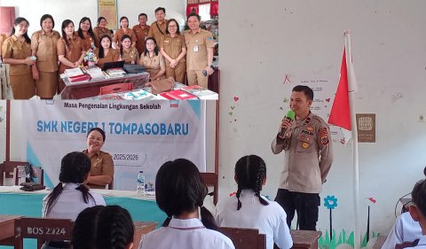 Pelaksanaan MPLS di SMKN 1 Tompasobaru menghadirkan berbagai pembawa materi, dimana pada Senin (14/7) hadir Kapolsek Tompasobaru IPDA Afri Saumana bersama Kanit Binmas Aiptu Jeffry Mandolang.