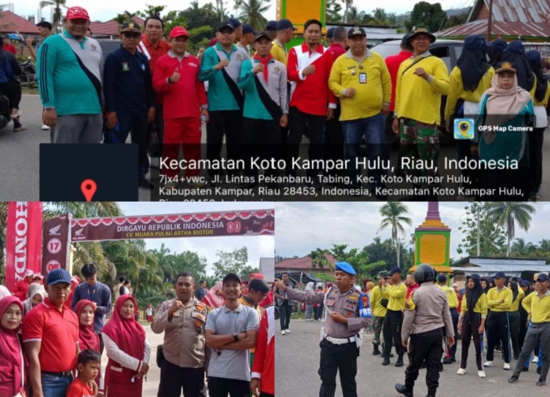 Polsek XIII Koto Kampar dan Koramil 12/XIII Amankan Gerak Jalan Santai HUT RI ke-80