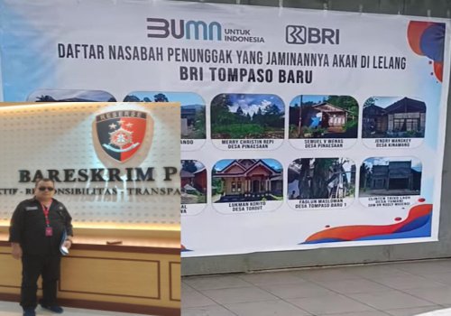 MINSEL, TI – Bank Rakyat Indonesia (BRI) Tompasobaru memampang barang jaminan yang akan dilelang dan nama nasabah didepan kantor BRI.