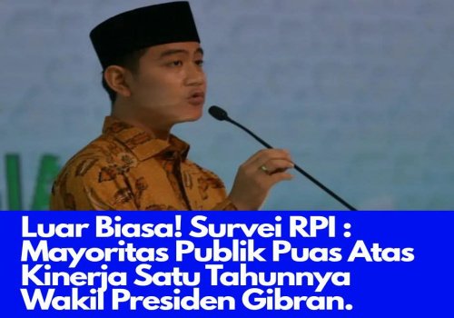 Survei RPI tersebut dirilis di Hotel Aryaduta Semanggi Jakarta, pada Sabtu 18 Oktober 2025, menyatakan mayoritas publik sangat puas dengan kinerja Gibran Rakabuming Raka mendampingi Presiden Prabowo Subianto.