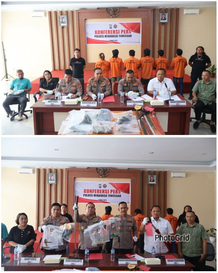 Transparansiindonesia.co.id, HUMAS POLDA SULUT — Kepolisian Daerah Sulawesi Utara secara resmi menjerat sepuluh individu sebagai tersangka dalam perkara bentrokan dua kelompok warga yang melibatkan masyarakat Desa Watuliney dan Desa Molompar, Kecamatan Belang, Minahasa Tenggara. Insiden tersebut terjadi pada Minggu dini hari, 30 November 2025, dan langsung memantik langkah penegakan hukum secara menyeluruh oleh jajaran kepolisian.
