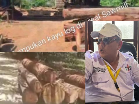 Kayu-kayu gelondongan terlihat di desa Sungai Sarik, Kampar Kiri, dan diduga hasil dari pembalakan liar ditampung di salah satu Sawmil di desa tersebut.