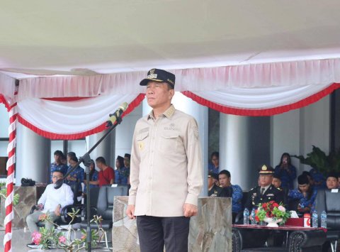 Bertindak selaku inspektur upacara, Bupati Franky Donny Wongkar (FDW) membacakan amanat Presiden Republik Indonesia, Prabowo Subianto.