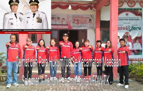 Ucapan selamat atas setahun kepemimpinan FDW-TK sebagai bupati dan wakil bupati Minahasa Selatan, juga datang dari pemerintah Kecamatan Maesaan bersama dengan seluruh para HukumTua di Kecamatan Maesaan.