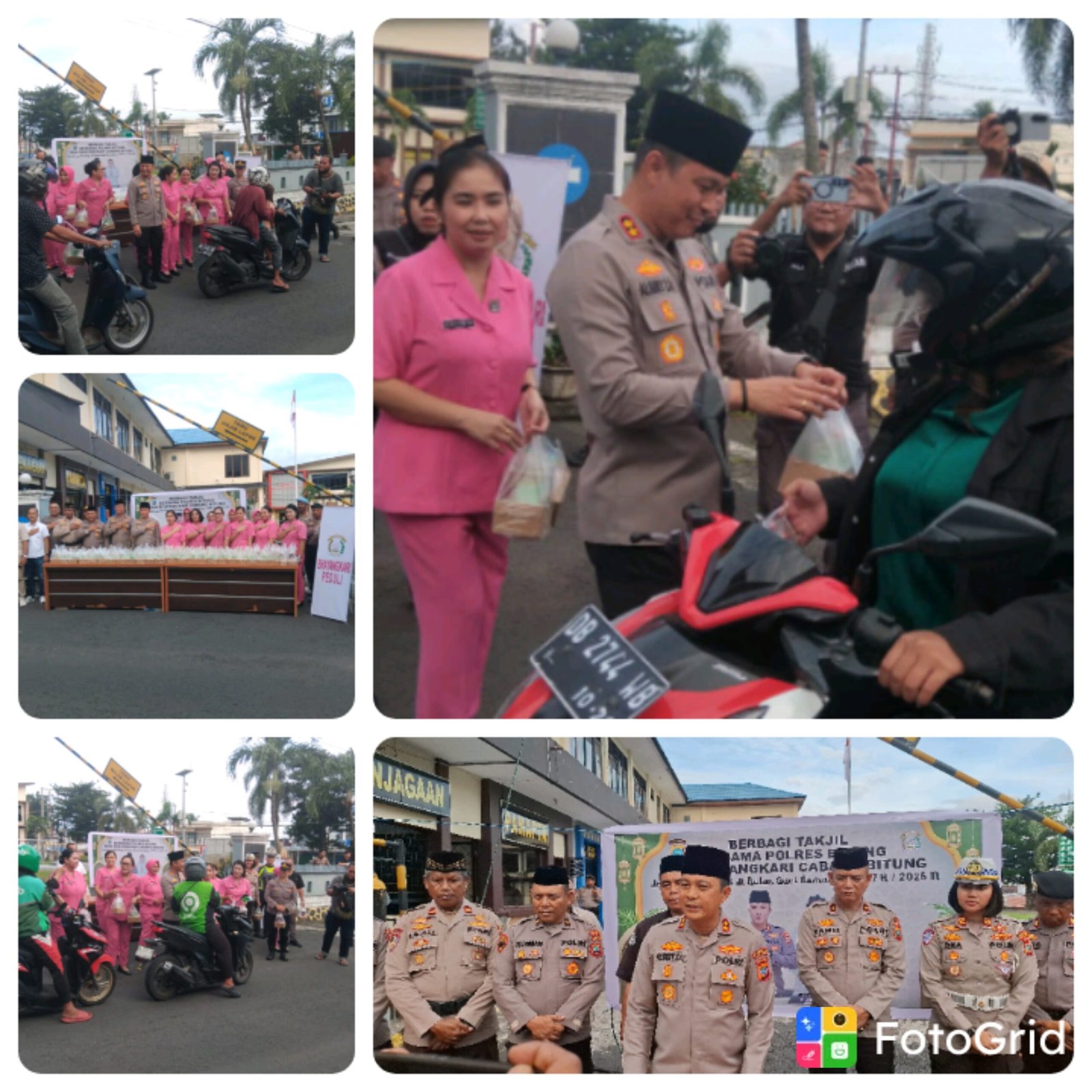 Kegiatan pembagian takjil dipimpin langsung oleh Kapolres Bitung Albert Zai, didampingi Ketua Cabang Bhayangkari Bitung Ny. Detta Albert Zai. Turut mendampingi Wakapolres Bitung J.H. Daniel Korompis, S.E., jajaran pejabat utama, personel Polres Bitung, serta pengurus Bhayangkari Cabang Bitung.