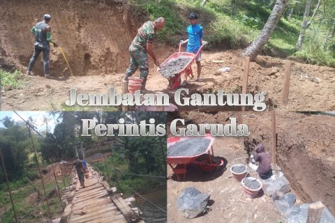 MINSEL, TI – Koramil 1302-17 Motoling terus melakukan pengawasan dan mengawal pengerjaan pembangunan jembatan gantung Perintis Garuda yang ada di desa Lompad, Kecamatan Ranoyapo.