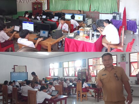 Dan terpantau pada Senin (27/4) beberapa sekolah dasar melaksanakan TKA di SMPN 1 Tompasobaru.